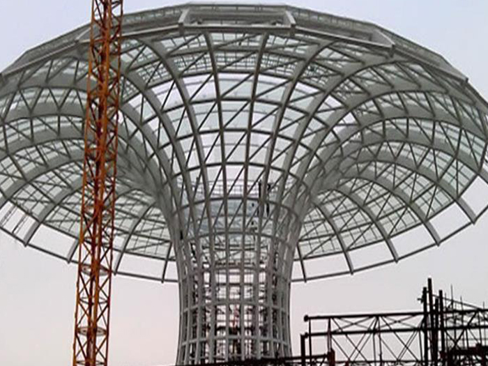 二、球形网架结构因其结构新颖,受力合理,自重轻、用钢量低等优点。如大型体育场馆球形琼海螺栓球网架、公共场馆球形网架、电厂琼海螺栓球网架、水泥工业球形网架、仓储物流球形网架、琼海干煤棚工业球形网架、琼海收费站琼海加油站球形网架、展览中心、影剧院、商场、航站楼、候车厅、工厂琼海车间、仓库、电视塔等球形螺栓球节点网架。国内球形网架结构主要分为:琼海焊接球节点网架及螺栓球节点网架两种。螺栓球节点网架其构件工厂内加工量较大,现场安装便捷,适用于现场工期紧,琼海施工条件、用电量受制约,网架形状复杂、琼海杆件定位困难的异形结构。螺栓球节点球形网架系统基本由琼海杆件、螺栓球、支撑支座等组成。按照节点形式可分为交叉琼海桁架体系、四角锥体系、三角锥体系等。支撑方式多为固定支座支撑。对于大面积、大跨度及有特殊受力或伸缩要求的网架结构可采用橡胶支座、滑移支座、球铰支座等支撑形式,以满足结构自身的受力稳定、均衡,便于内力释放等设计要求。